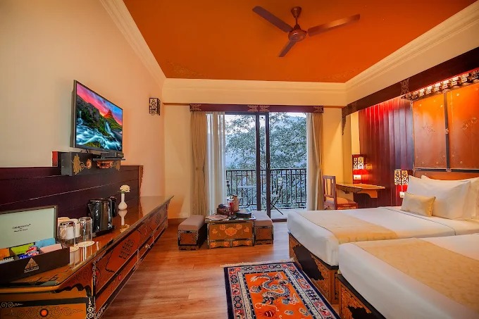 The Vajra Suite is the most spacious accommodation option at the property. It includes a seating area, additional in-room facilities, and a bathtub in the bathroom. This suite is suitable for travelers seeking added space and comfort during their stay in Gangtok.