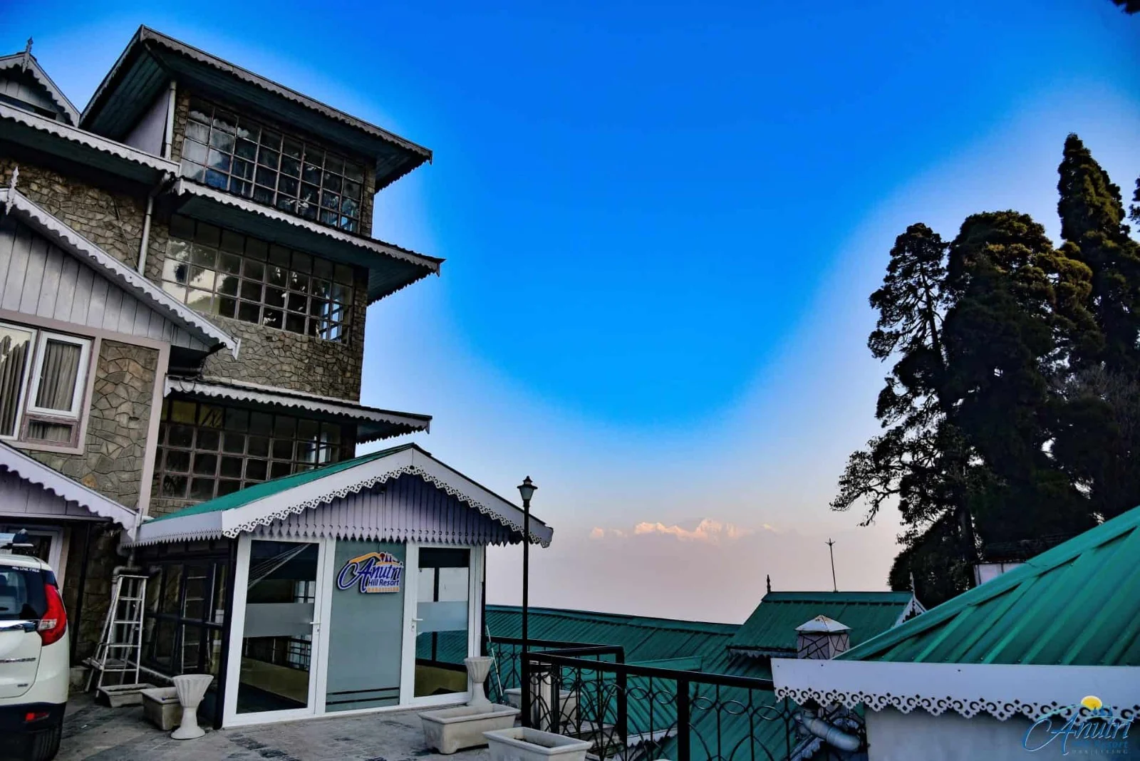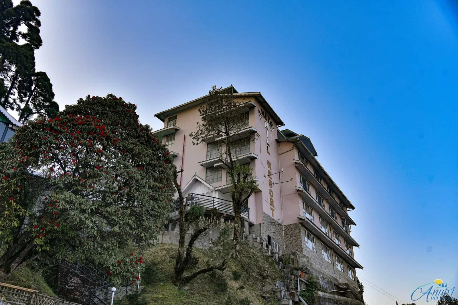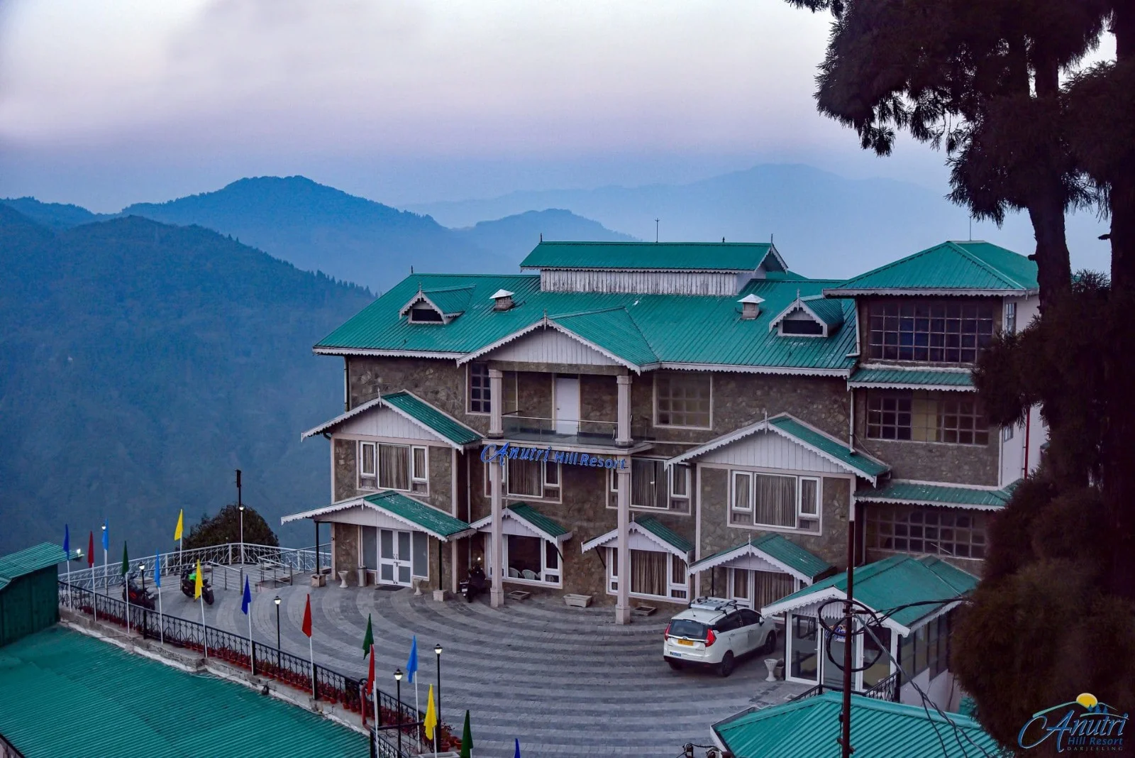 Anutri Hill Resort functions as a hillside luxury retreat rather than a conventional city hotel. Spread across a naturally contoured landscape, the property uses open lawns, walking paths, and standalone structures to create a sense of space and privacy. The overall experience is shaped by quiet mornings, misty evenings, and uninterrupted views of the hills and valleys surrounding Ghoom.