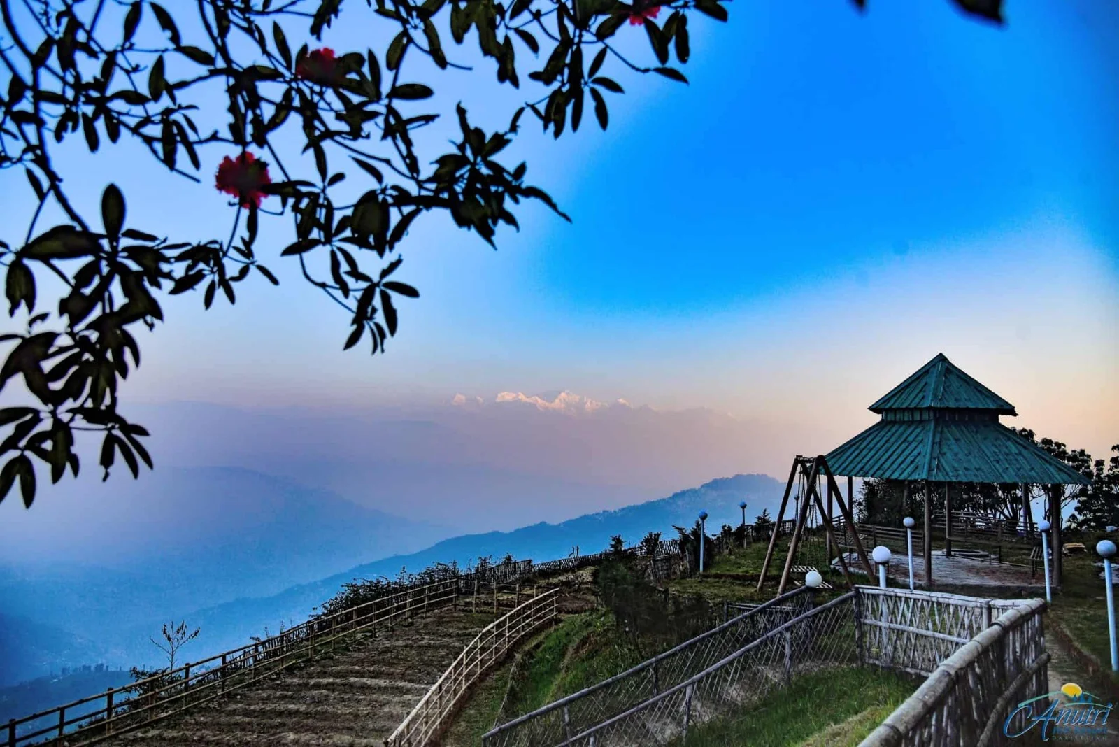 Anutri Hill Resort is a luxury retreat located in the Upper Batasia area of Ghoom, on Gandhi Road in Darjeeling. Positioned slightly away from the busy town center, the resort offers a quiet hillside setting surrounded by forests, mountain air, and expansive views of the Eastern Himalayas. Its location near Batasia Loop places it in one of the most scenic and historically significant parts of the Darjeeling hills, making it appealing to travelers who prefer nature, space, and calm over crowded tourist zones.