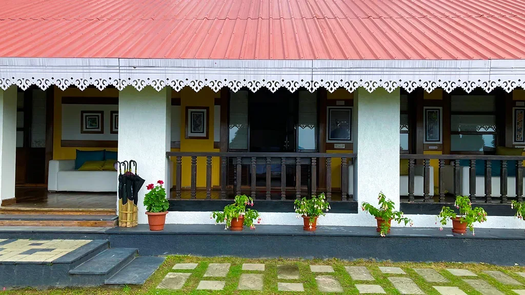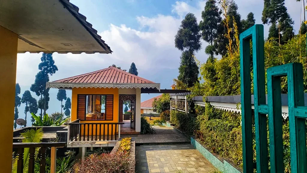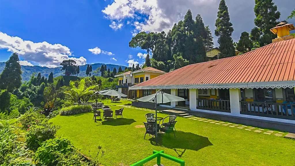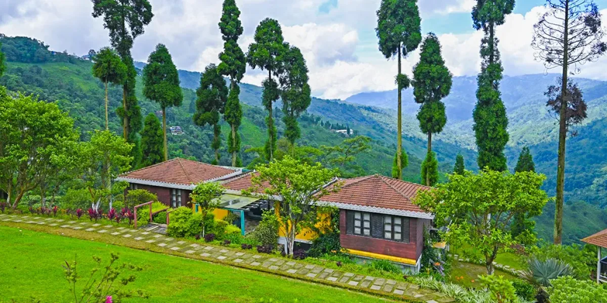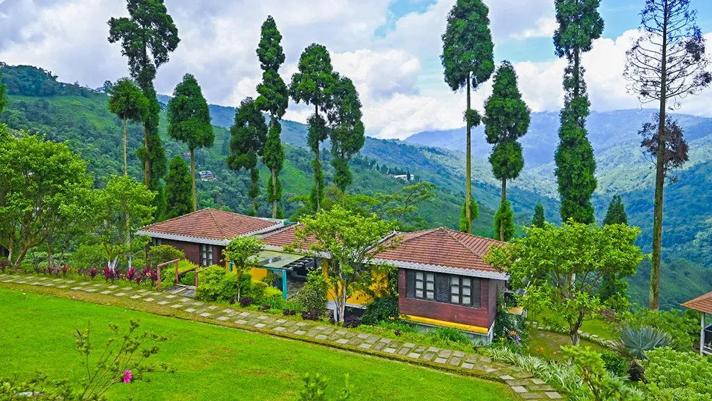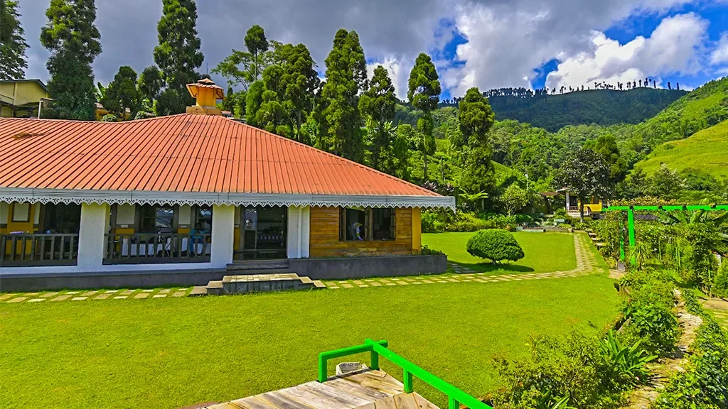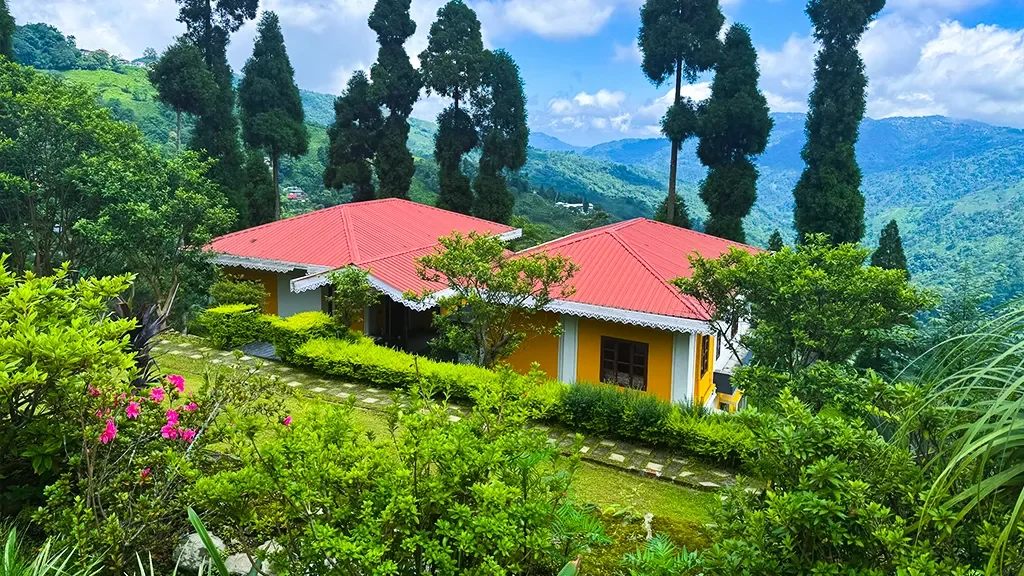 Located away from crowded tourist areas, Chamong Chiabari enjoys a secluded and scenic setting in the Darjeeling hills. The retreat is surrounded by tea gardens, forests, and mountain landscapes.