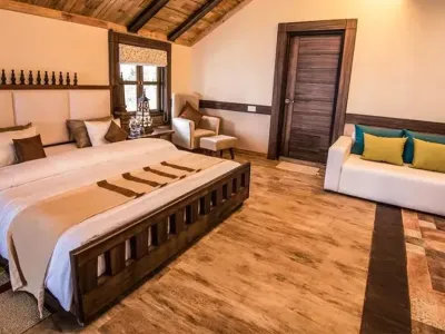Accommodation at Chamong Chiabari Mountain Retreat is thoughtfully designed to provide comfort while maintaining a close connection with nature. Rooms are spacious, airy, and offer beautiful views of the surrounding tea gardens and hills.