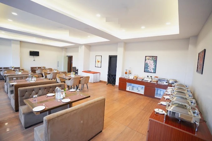 Dining at Cilantro Comfort includes both vegetarian and non-vegetarian options, with cuisines ranging from local Indian dishes to continental selections. The restaurant environment caters to guests who prefer dining within the property before or after their day of exploration. While outside food is generally not allowed, the on-site dining offers a varied selection suitable for different preferences.