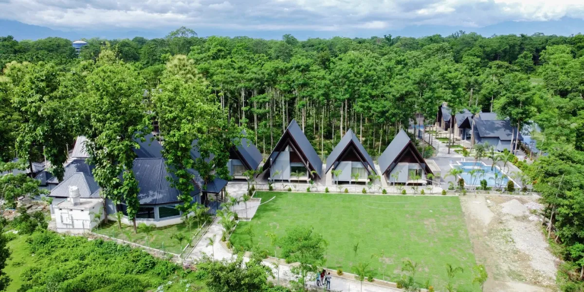 Set away from busy urban centres, the property invites travellers to enjoy calm forest-edge views, spacious grounds and a luxury resort atmosphere that complements the natural beauty near Madarihat and the surrounding forest region.