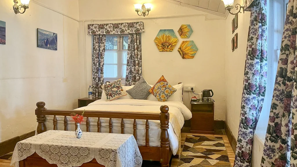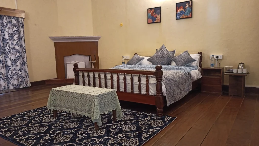 The Bungalow: A Living Heritage Yule Tea Retreat retains the grandeur of colonial hill architecture with all the comforts of modern hospitality. Highlights include: High ceilings and exposed wooden beams, Antique beds, wardrobes, and planter’s writing desks, Fireplaces in common and private rooms, A wraparound verandah with cane seating, Polished wooden floors and classic light fixtures. The rooms are spacious, airy, and thoughtfully appointed with: Large beds with warm quilts and clean linen, Attached modern bathrooms, Garden or tea valley views, Rustic decor and vintage embellishments, Space to write, relax, and restore. Guests often remark that time seems to pause here – and that’s the whole idea.