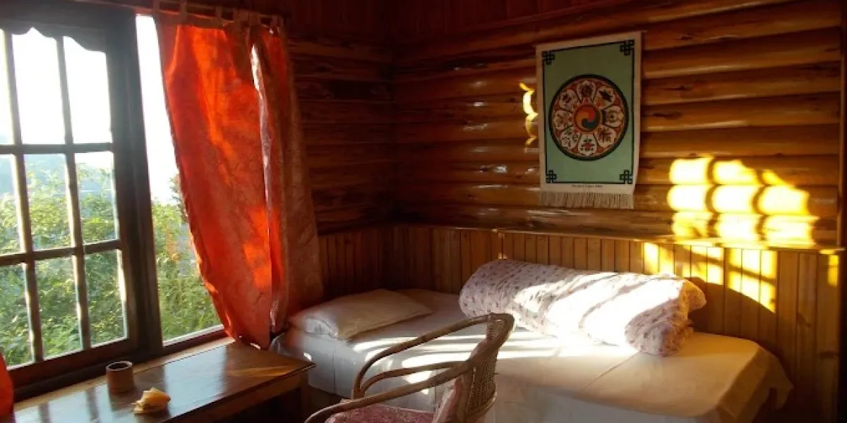 The camp offers cottage-style accommodations with basic furnishings designed to suit the forest environment.