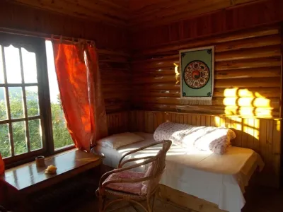 The accommodation at Neora Valley Jungle Camp is designed to blend into the forest environment while providing basic comfort and shelter. The camp offers cottage-style rooms constructed using simple materials suited to the climate and location. These cottages are positioned to offer views of the surrounding forest and hills.