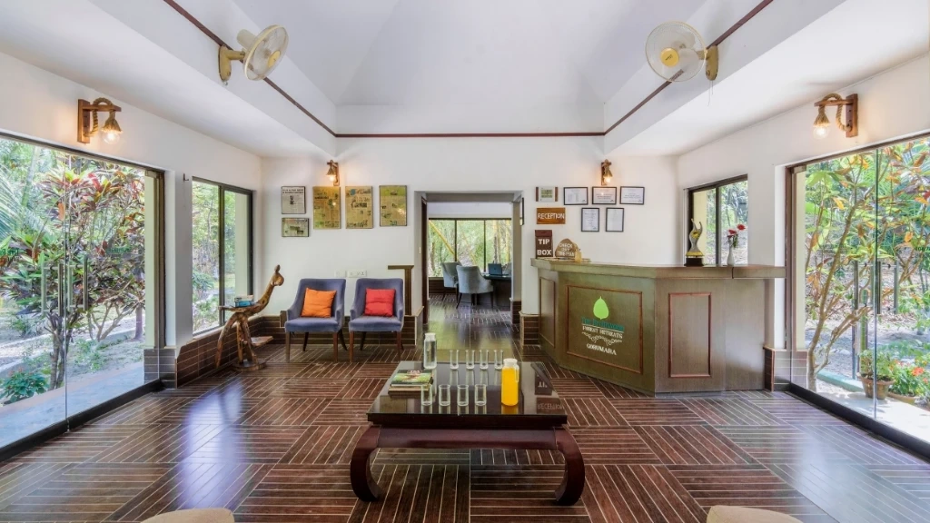 Accommodation: Comfort Without Compromise The retreat offers a selection of well-appointed cottages and rooms, each designed to blend into the landscape while offering all modern amenities. Room features: Spacious king-sized beds and large windows, Private sit-outs or balconies with forest/river views, Air conditioning and fans (a rarity in the region), Attached bathrooms with running hot water, Organic toiletries and bamboo detailing, Writing desks and hammocks (in some rooms). The design leans eco-conscious, with earthy tones, natural textures, and open layouts to connect you with your surroundings.