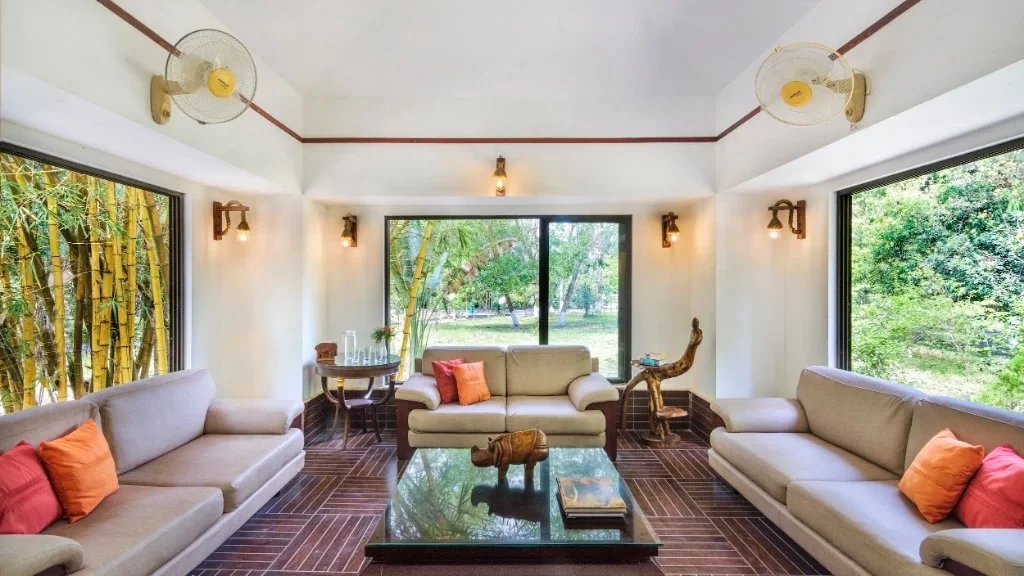 Each room is positioned to provide views of the surrounding forest, gardens, or riverine landscape. The interiors are simple yet elegant, reflecting the spirit of a forest retreat while providing all essential modern comforts.