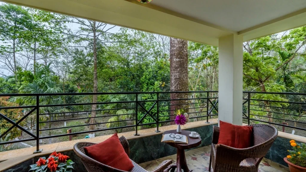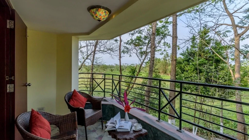 The retreat enjoys a tranquil setting away from busy towns while remaining easily accessible. With forest views on one side and the Murti River flowing nearby, guests are surrounded by nature throughout their stay. The calm environment makes it perfect for travellers looking to unwind, relax, and enjoy the natural rhythm of the Dooars.