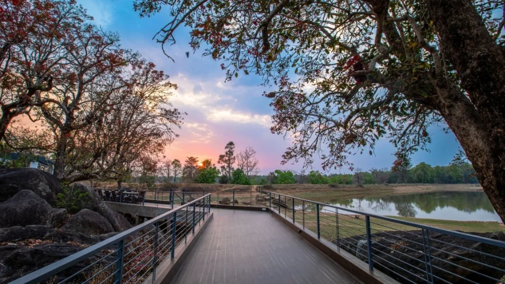 Riverwood Forest Retreat is a thoughtfully designed eco-inspired resort that celebrates the raw beauty of the Dooars landscape. Located amid forested surroundings and close to wildlife corridors, the retreat focuses on offering guests a calm and authentic nature experience rather than a crowded commercial holiday. The architecture, open spaces, and layout are carefully planned to maintain harmony with the surrounding environment.
