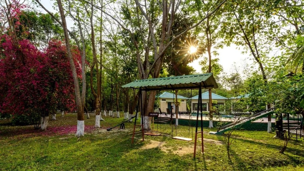 Riverwood Forest Retreat is a serene nature resort located in the lush green Dooars region of North Bengal, close to the fringes of Gorumara National Park. Surrounded by dense forests, open grasslands, and the gentle flow of the Murti River, this retreat offers a peaceful escape for travellers seeking nature, wildlife, and slow living. Designed to blend harmoniously with its natural surroundings, Riverwood Forest Retreat is ideal for couples, families, and nature lovers looking for an immersive forest stay in Dooars.