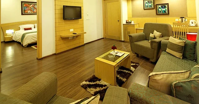 The hotel offers Deluxe Rooms, Executive Rooms, and Suites, each equipped with modern amenities and complimentary Wi-Fi.