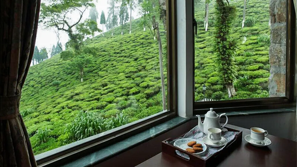 The Estate’s Heritage & Setting, Sourenee Tea Estate covers over 137 hectares of lush plantation in the Mirik subdivision of Darjeeling. While the estate produces award-winning orthodox teas, it has also carved a niche in hospitality with its boutique resort, which was created to reflect both the grandeur of colonial hill architecture and the comfort of modern luxury. The moment you enter the estate, a sense of calm descends. Surrounded by forested ridges and overlooking vast slopes of tea bushes, Sourenee stands as a sanctuary for those looking to escape the noise of everyday life without giving up on refinement.