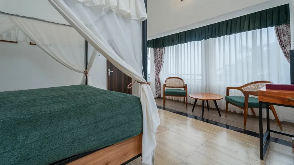 Tea Garden View Rooms offer beautiful views of rolling tea plantations and green slopes. These rooms are ideal for guests who want to wake up to misty mornings and peaceful garden scenery.
