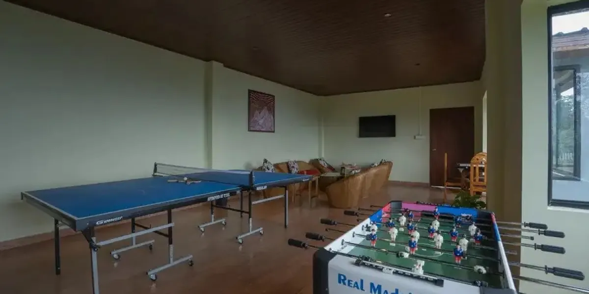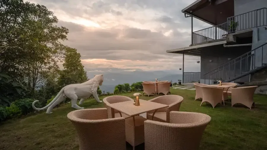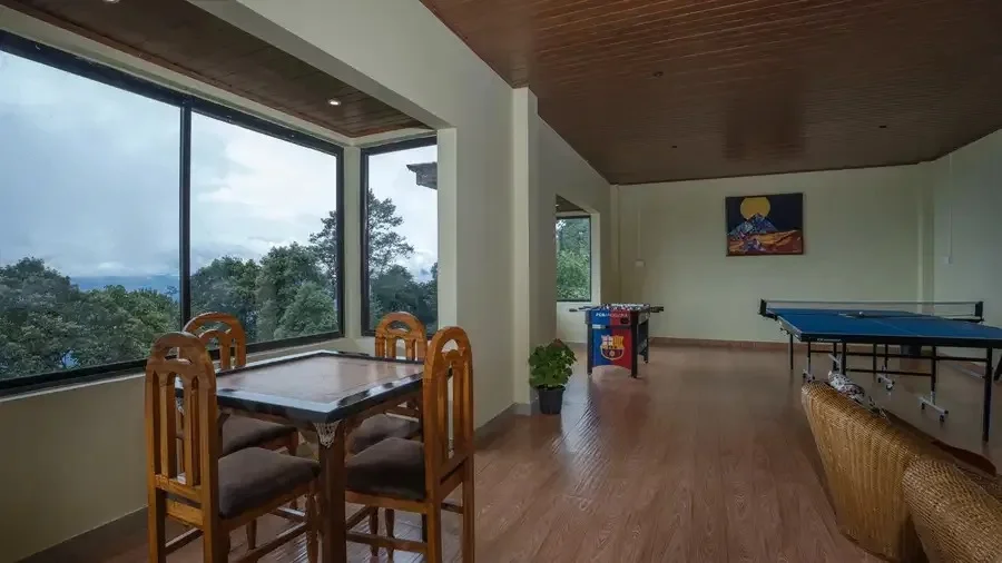 The property reflects a modern hill retreat style, where open spaces, natural light, and outdoor views form a core part of the stay. The atmosphere is unhurried and restorative, appealing to guests who want calm mornings, peaceful afternoons, and evenings surrounded by mist and forest sounds.