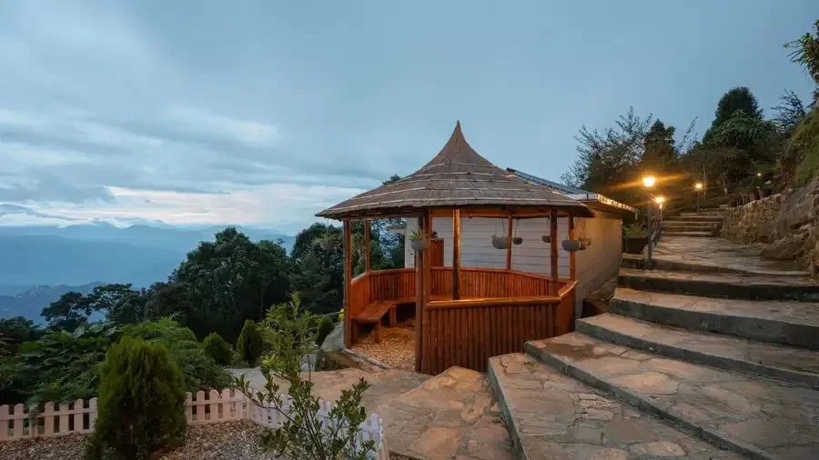 Lamahatta is known for its forests, village pathways, and scenic viewpoints, and the resort sits naturally within this environment. The surrounding landscape includes tall trees, rolling slopes, and open sky, creating a soothing backdrop throughout the day.