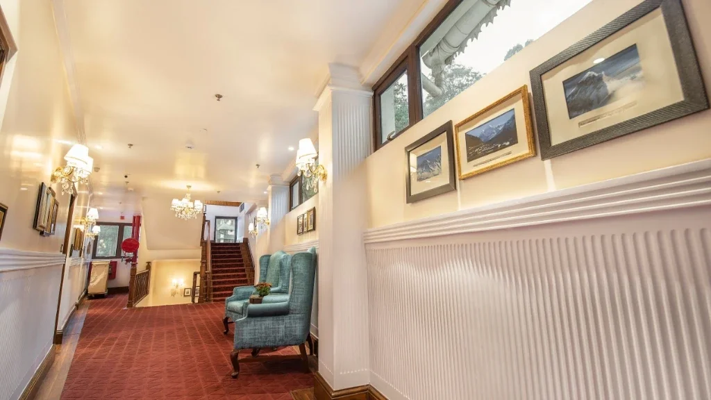 Positioned close to key areas of town, the hotel offers convenient access to Darjeeling while maintaining a calm and enclosed atmosphere within its grounds. The building, interiors, and shared spaces preserve a sense of history that appeals to travelers interested in heritage stays.